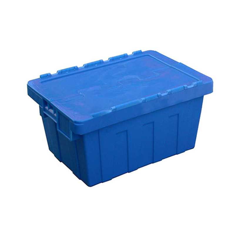 1. 物流箱為可插式、帶連體外翻箱蓋;把手搬運舒適,空箱套入時,把手在外。