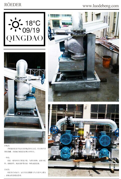 真空系統(tǒng)的基本原理是,利用凸輪轉(zhuǎn)子泵產(chǎn)生的負(fù)壓來(lái)抽吸來(lái)自便器、洗手盆、淋浴器等的污水和污物??奢斔皖w粒物、纖維,可氣液固三相混輸,各種突出性能都得益于該系統(tǒng)的關(guān)鍵設(shè)備—羅德凸輪轉(zhuǎn)子泵。